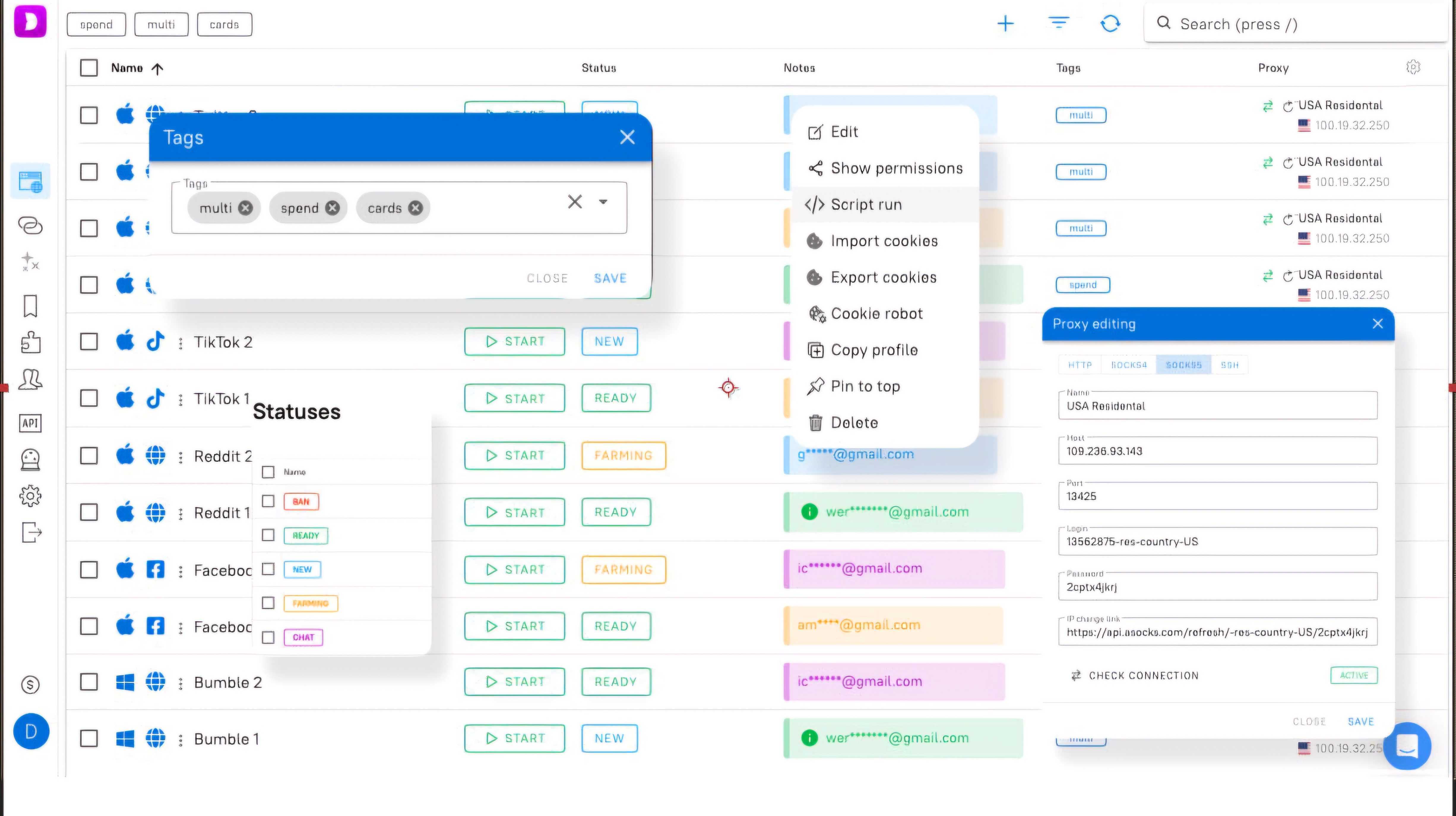 ●Keep Proxies Fresh: If a proxy stops working or gets slow, swap it out. Dolphin Anty makes this quick.
