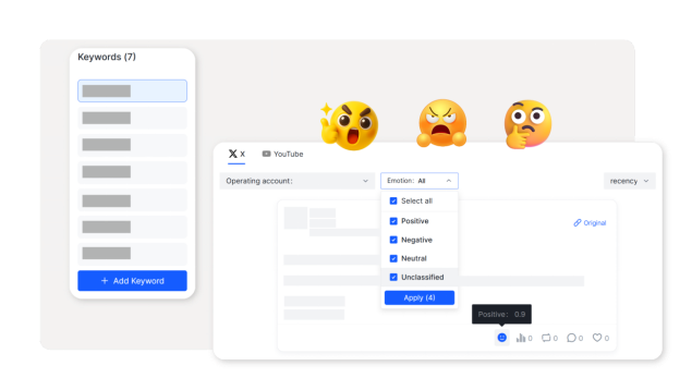Automatically track keywords across platforms to catch every signal.