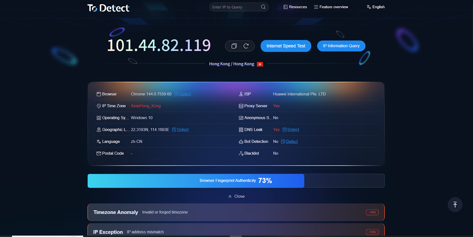 ToDetect is a professional browser fingerprint detection and online environment analysis platform. It provides comprehensive detection of browser, system, hardware, and network fingerprints, helping users evaluate privacy risks, fingerprint uniqueness, and anti-detection effectiveness. ToDetect is widely used for privacy protection, anti-tracking analysis, multi-account testing, and risk assessment scenarios.